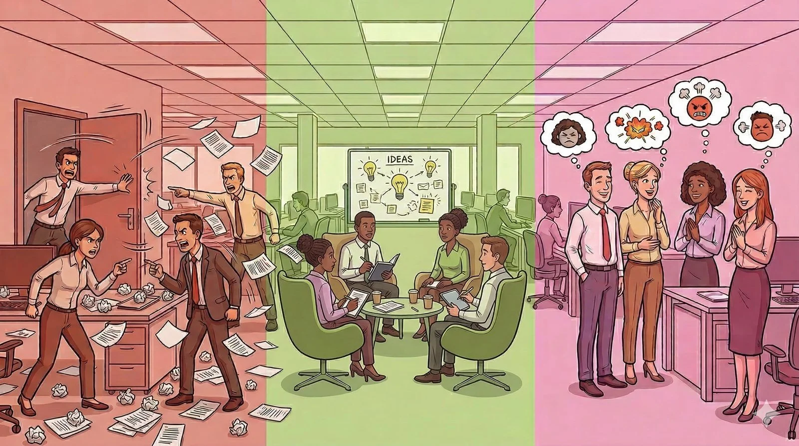 Vermeidung von Konflikten: Probleme werden ignoriert oder nur oberflächlich angesprochen, was langfristig zu größeren Spannungen führt.