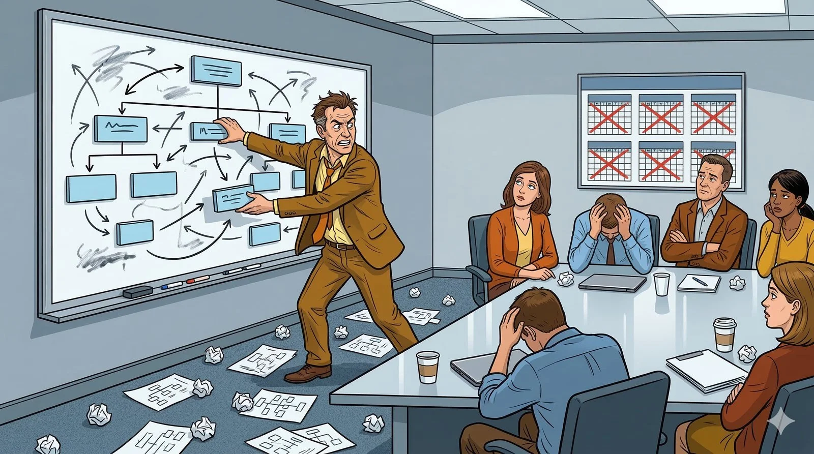 Unsere Analyse in der Praxis zeigt: Viele Transformationen scheitern, weil sie beim letzten Schritt anfangen: Der Struktur. Führungskräfte reagieren auf Ineffizienz oder Silo-Denken, indem sie "Klötzchen im Organigramm verschieben".