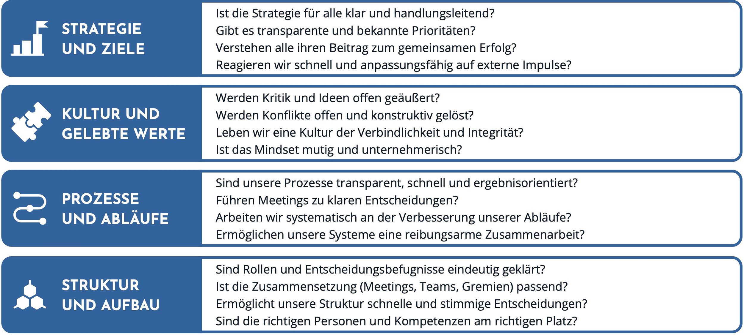 Wenn Sie so vorgehen, fühlt sich eine neue Struktur nicht mehr wie eine Bedrohung von oben an, sondern wie die logische Konsequenz, die die Zusammenarbeit endlich leichter macht. Struktur folgt Prozess folgt Kultur folgt Strategie.